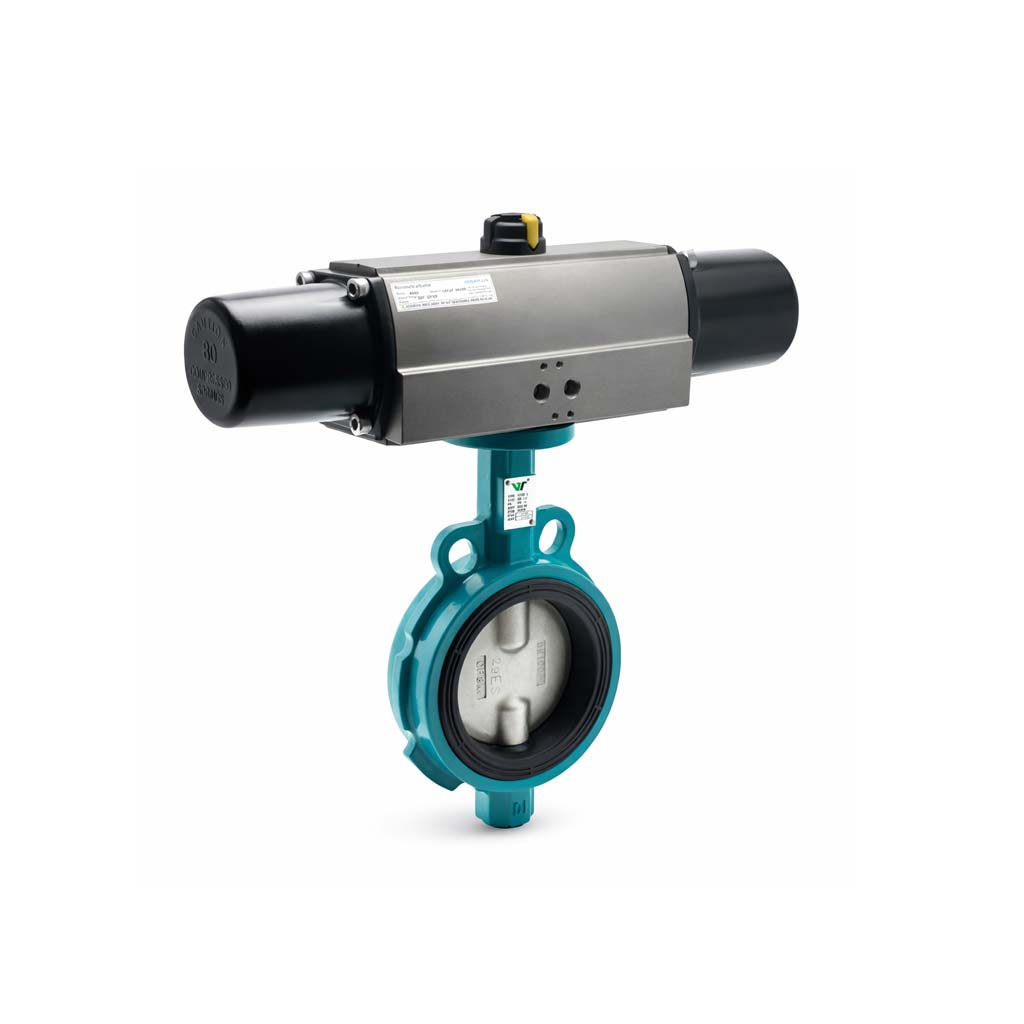 Wafer tip gövde yapısı, vananın iki flanş arasına kompakt şekilde monte edilmesine olanak tanır. Bu tasarım, montaj alanında tasarruf sağlarken sistem içine pratik entegrasyon imkânı sunar. Pnömatik aktüatör ile birleşen iskoç boyunlu mekanizma, hızlı tepki süresi ve güçlü tork üretimi sayesinde otomasyon altyapısına sahip tesislerde verimli kullanım avantajı sağlar. Özellikle sık çalıştırılan, yüksek dirençli veya daha kontrollü açma-kapama ihtiyacı bulunan hatlarda etkili sonuç verir.