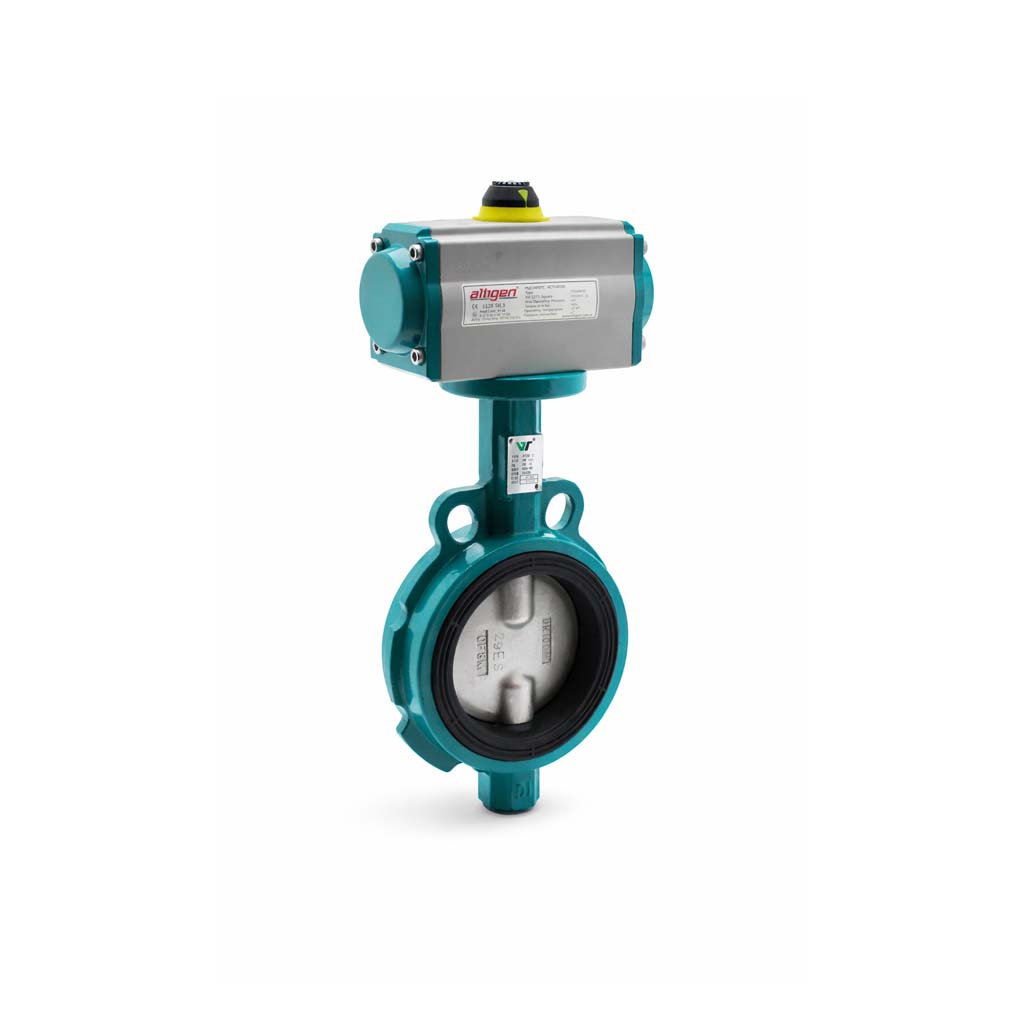 Pnömatik aktüatörlü wafer tip kelebek vana, kompakt gövde yapısı, hızlı açma-kapama performansı ve otomasyon sistemlerine uyumlu çalışmasıyla endüstriyel akış kontrolünde verimli çözüm sunar.